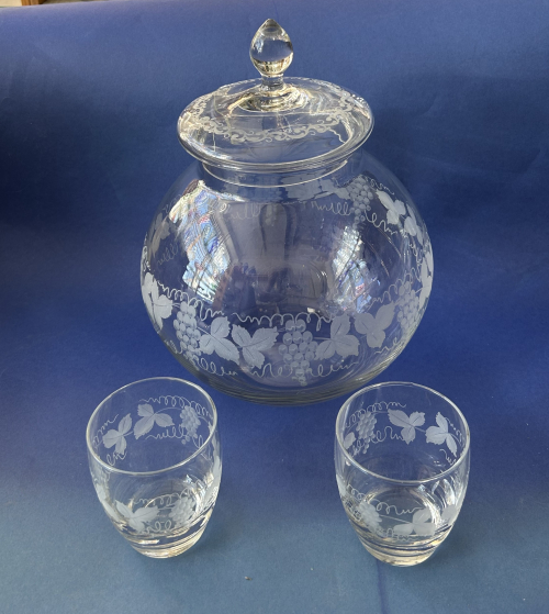 Kirstallglasbowle echt handgeschliffen mit Weinlaub und Trauben Preis inc. 6 bechern